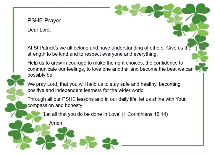 St Patrick’s PSHE Intent Statement – CLICK HERE